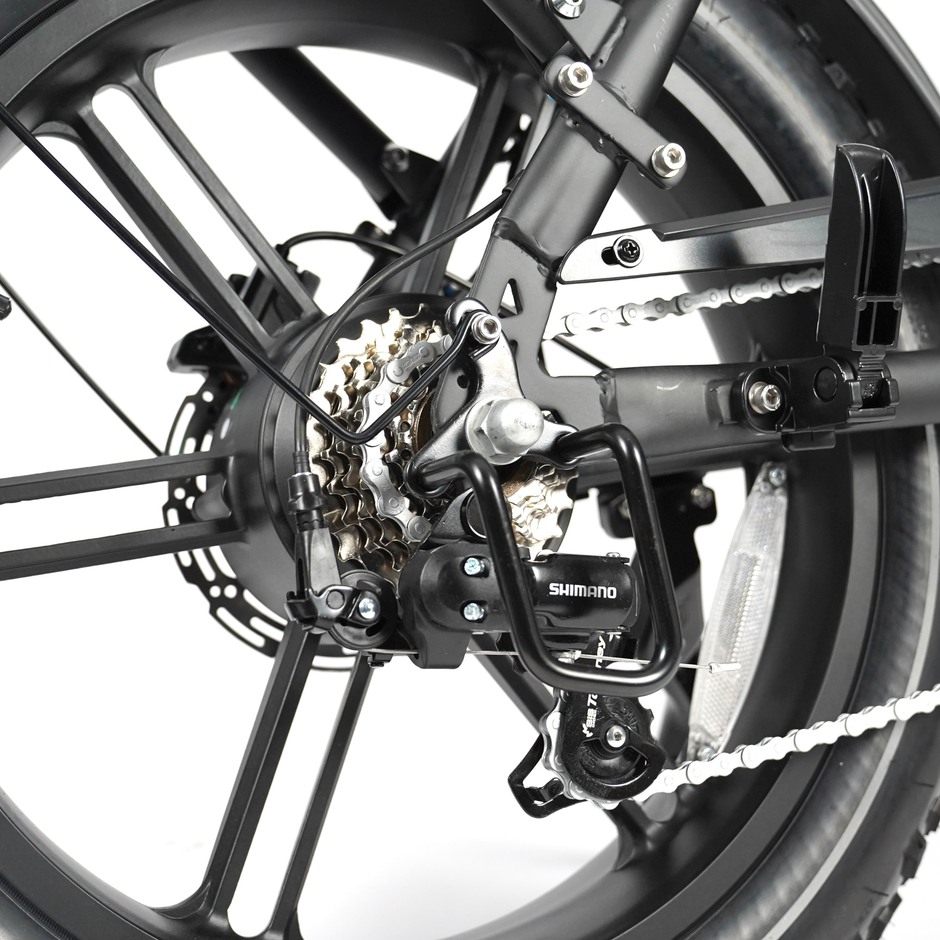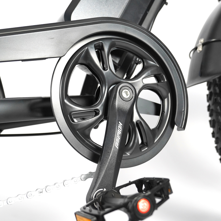 De hydraulische schijfremmen zorgen voor krachtige en betrouwbare remprestaties. Daarnaast is de fatbike uitgerust met een ingebouwd alarmsysteem voor extra veiligheid.